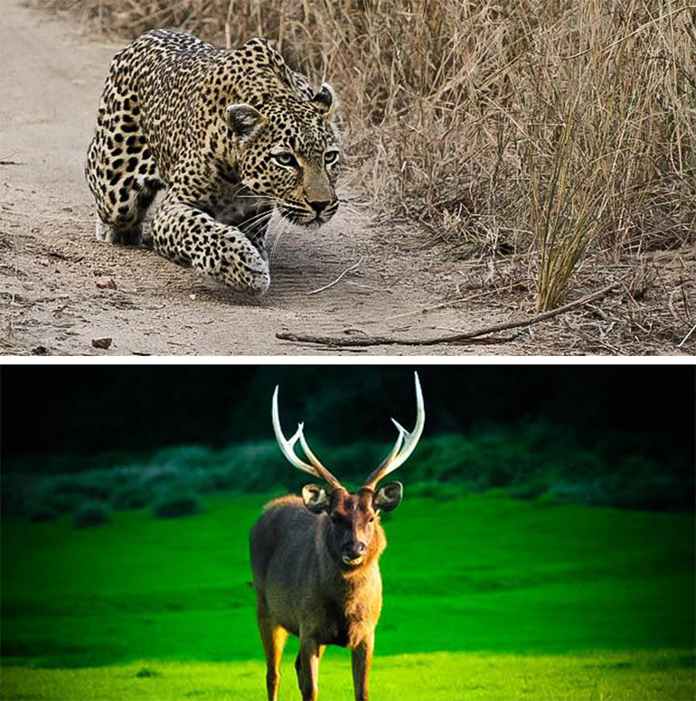 leopards, sloth bears, wild elephants, spotted deer, wild boar, water buffaloes, etc.